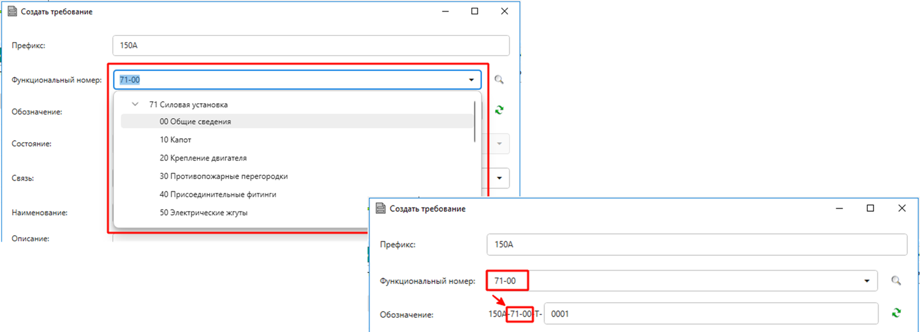 При создании требованиями, доступен выбор функционального номера из структуры предопределенных значений.