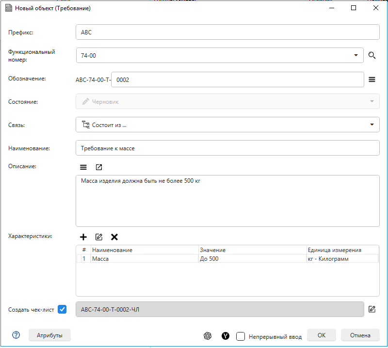 Функционал повышает удобство и скорость создания объектов управления требованиями: