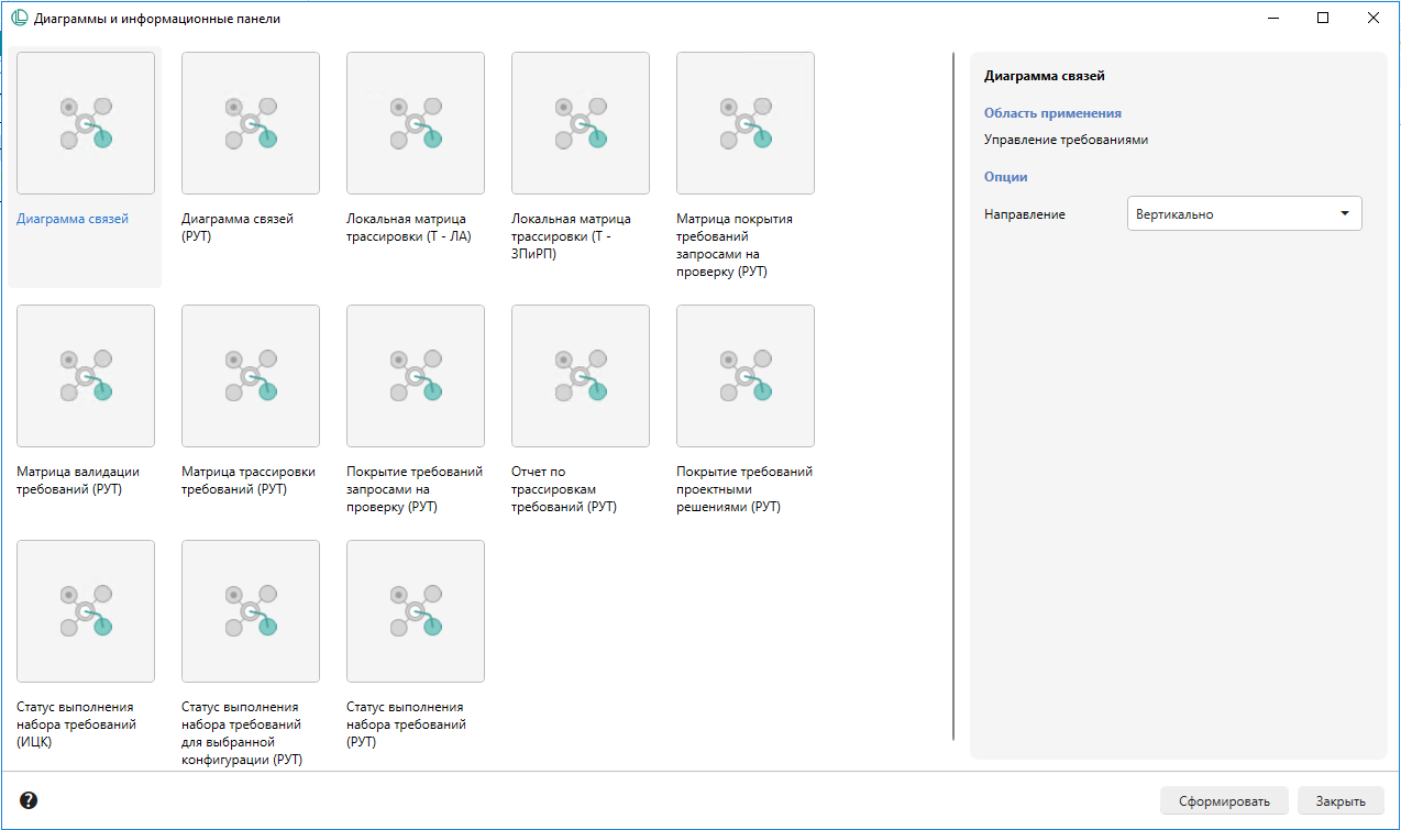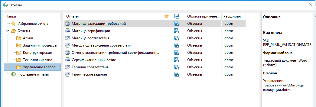 - Специализированные отчеты (матрица валидации требований, матрица верификации);