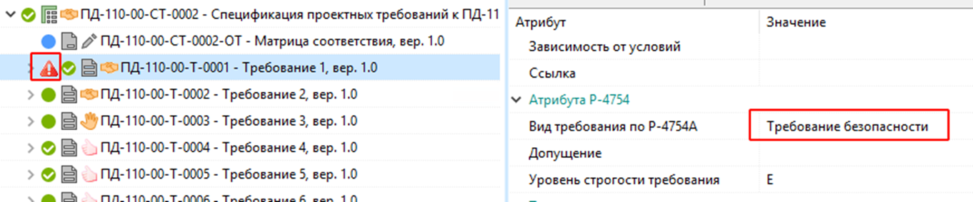 Для визуальной идентификации требований безопасности используется дополнительная пиктограмма, отображаемая при наличии значения соответствующего атрибута требования.