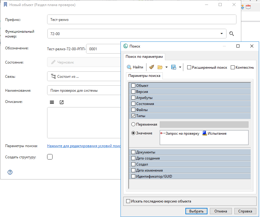 Запросы на проверку и испытания могут формировать структуры - планы проверок.