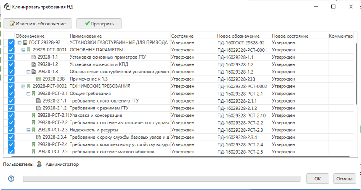 Команда «Клонировать Требование НД» – позволяет клонировать ранее созданные мастер-спецификации требований НД.