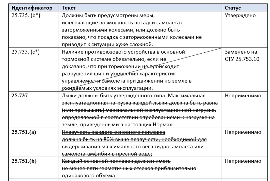 - Для требований НД, замененных по согласованию с сертификационными органами, ячейка с текстом перечеркивается по диагонали.