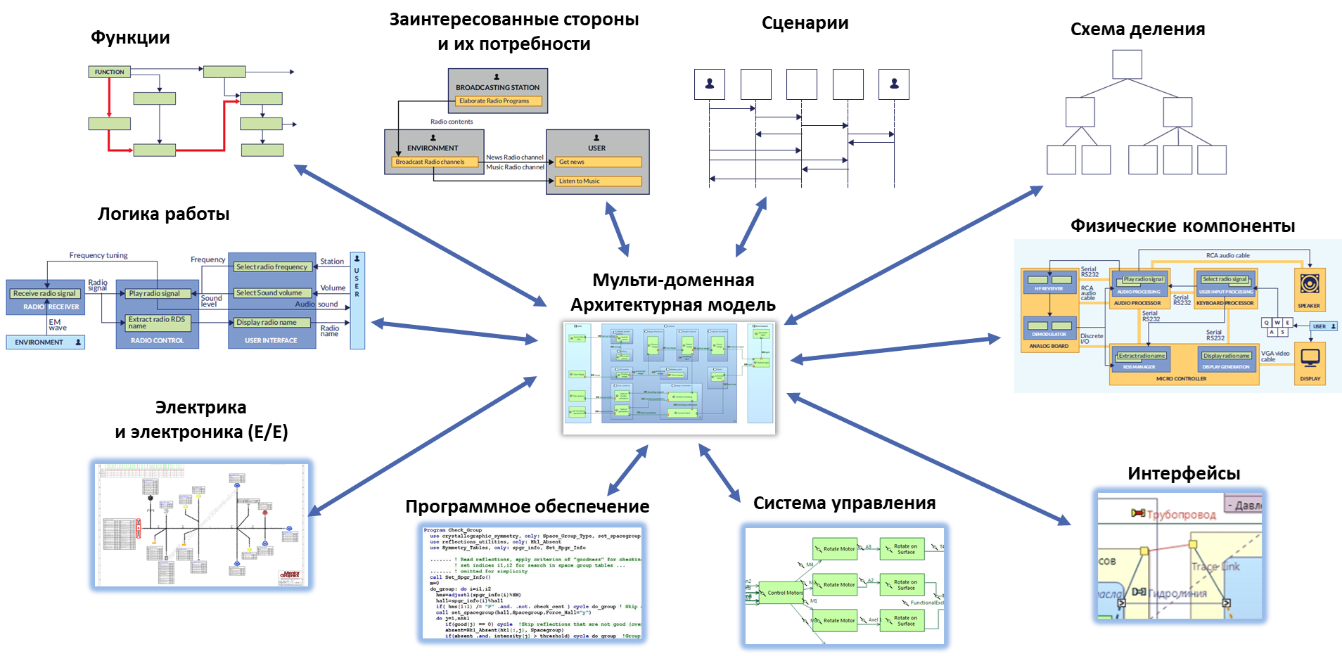 Классический подход: Разные специалисты (менеджеры, системные инженеры, разработчики "железа" и ПО, тестировщики) видят систему через призму своих документов. Их ментальные модели могут сильно расходиться.